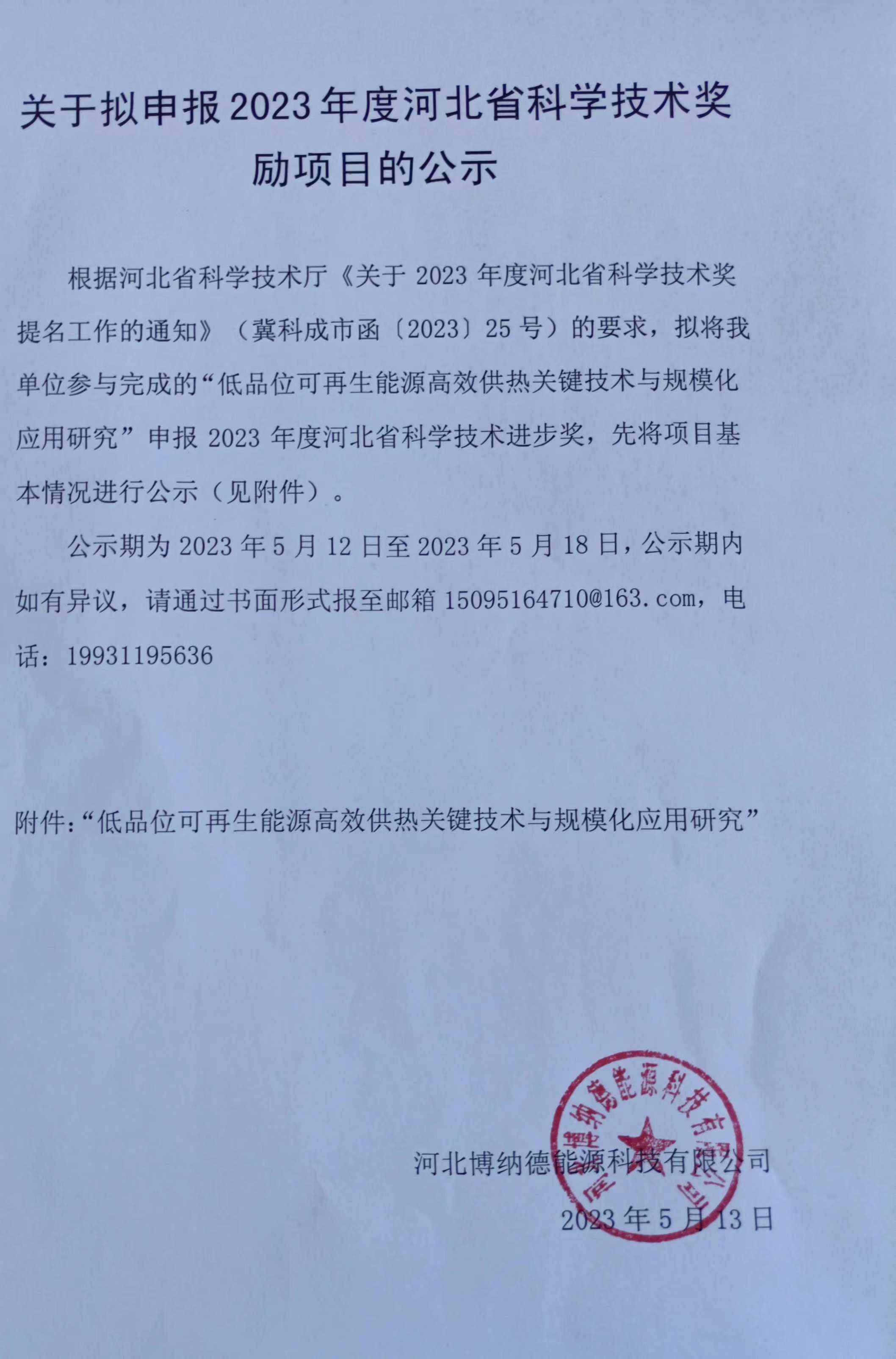 關(guān)于擬申報(bào)2023年度河北省科學(xué)技術(shù)獎(jiǎng)勵(lì)項(xiàng)目的公示